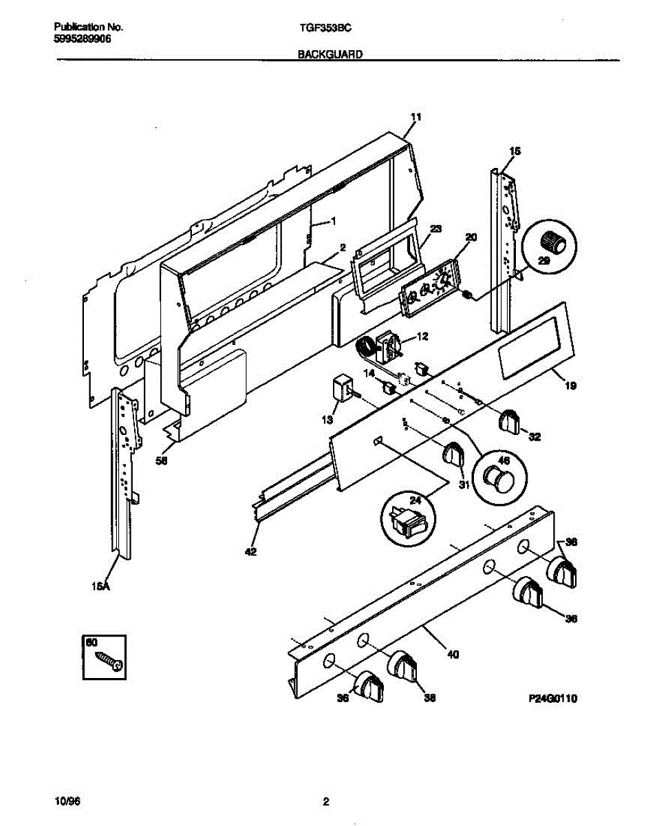 Parts for Frigidaire TGF353BCDD: 02 - Backguard Parts