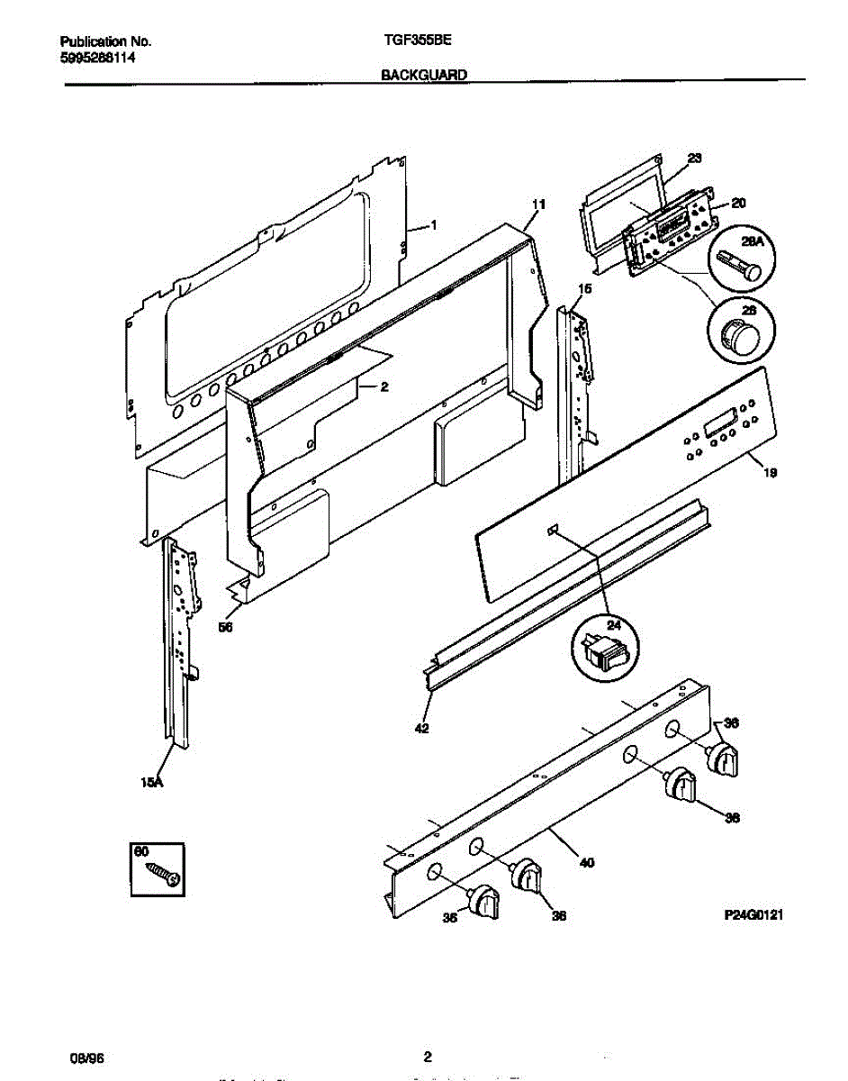 Parts for Frigidaire TGF355BEWA: 02 - Backguard Parts