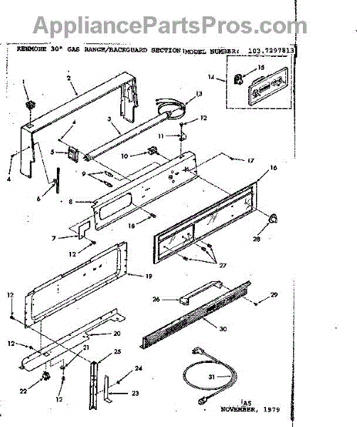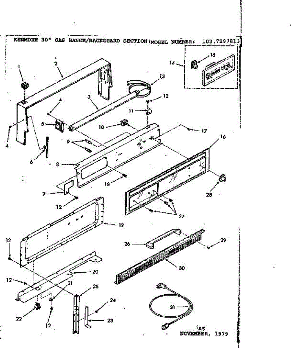 Parts for Kenmore 103.7297813 (1037297813, 103 7297813): Backguard Parts