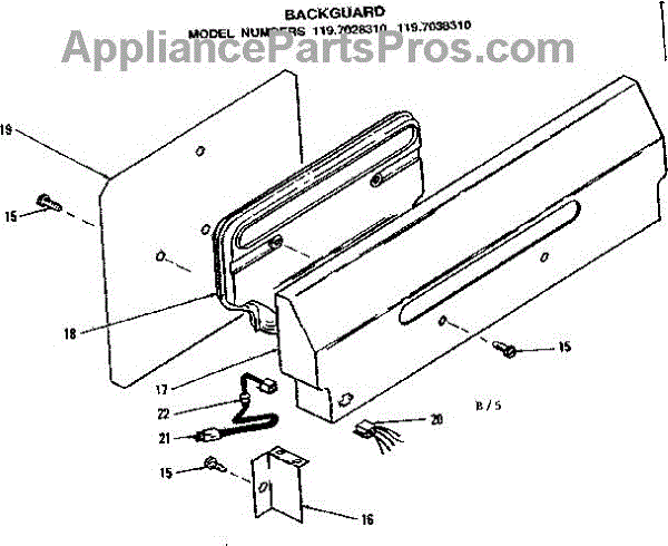 Parts for Kenmore 119.7028310 (1197028310, 119 7028310): Backguard Parts
