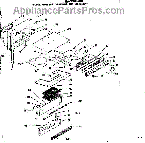 Parts for Kenmore 119.9728310 (1199728310, 119 9728310): Backguard Parts