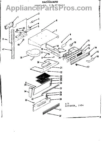 Parts for Kenmore 119.9738410 (1199738410, 119 9738410): Backguard Parts