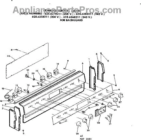 Parts for Kenmore 628.6358211 (6286358211, 628 6358211): Backguard Parts