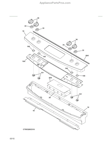 This control console is the outer housing that holds and protects the appliance's control buttons and display, restoring a clean, functional front surface and securing the control components. What it does: