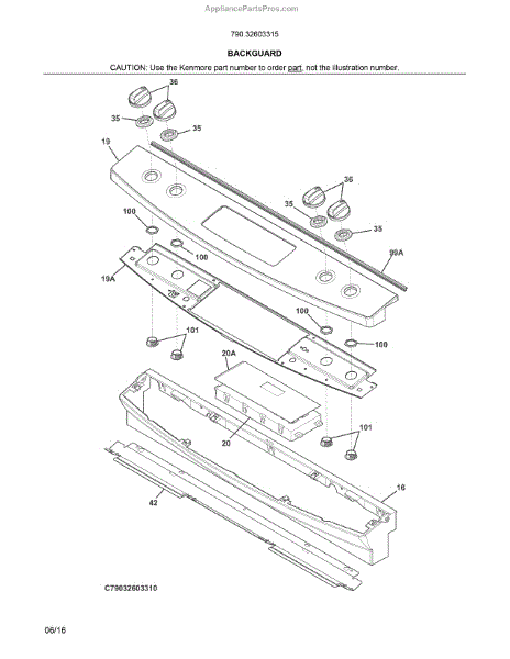 Parts for Kenmore 790.32603315 (79032603315, 790 32603315): Backguard Parts