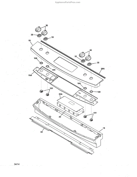 This control console is the outer housing that holds and protects the appliance's control buttons and display, restoring a clean, functional front surface and securing the control components. What it does: