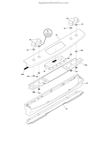Graphic label overlay for your electric range control panel. Replaces worn, peeling, or cracked original to restore clear button legends and a clean finish.