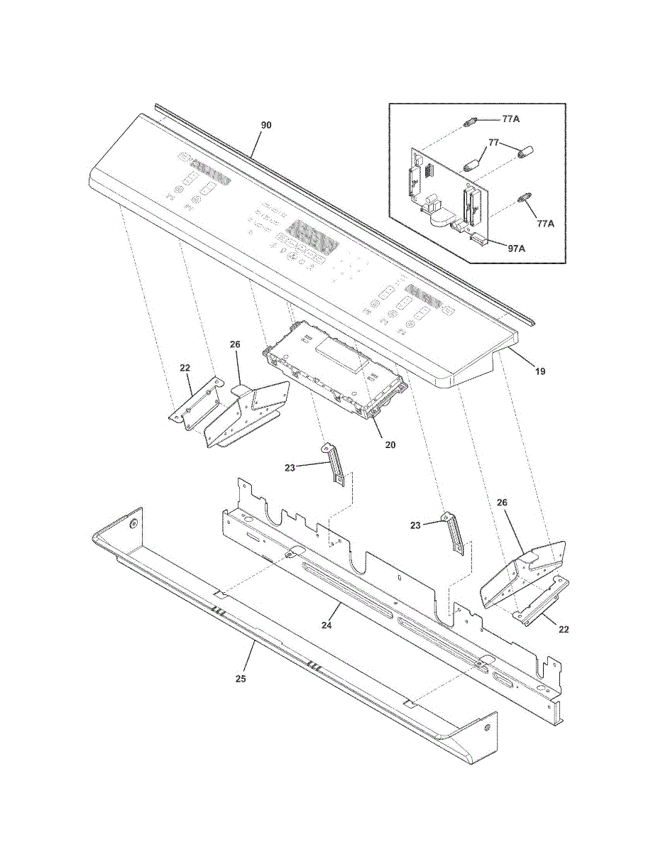 Mounting screw for electric range, oven, or wall oven assembly. Secures internal components and panels. Replace if stripped, missing, or damaged.