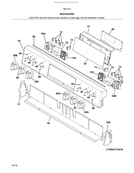 Parts for Kenmore 790.41313415 (79041313415, 790 41313415): Backguard Parts