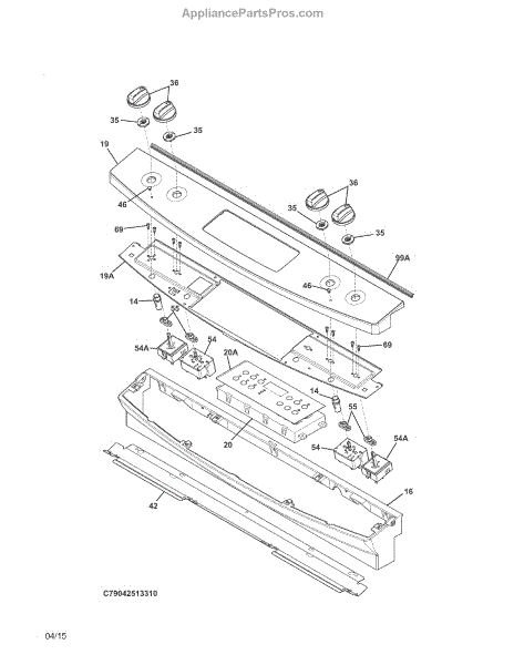 This control console is the outer housing that holds and protects the appliance's control buttons and display, restoring a clean, functional front surface and securing the control components. What it does: