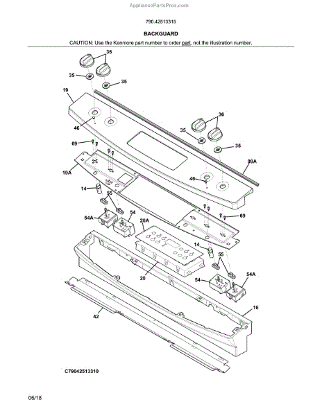 Parts for Kenmore 790.42513315 (79042513315, 790 42513315): Backguard Parts