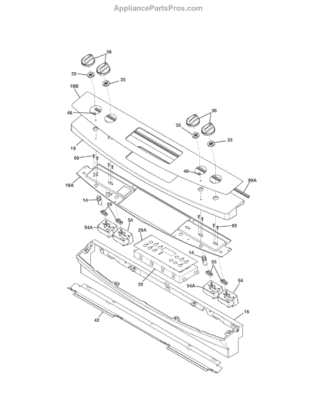 This control console is the outer housing that holds and protects the appliance's control buttons and display, restoring a clean, functional front surface and securing the control components. What it does: