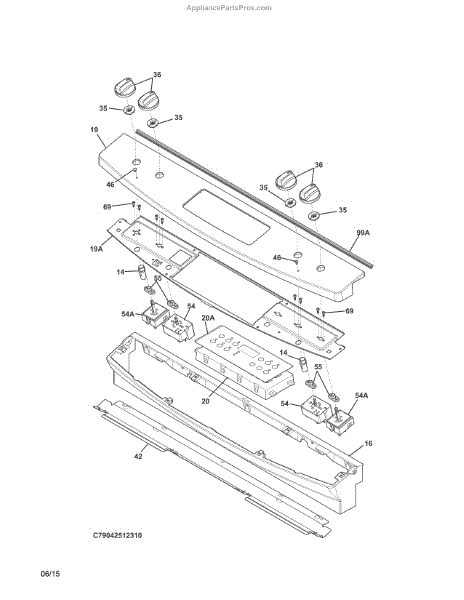This control console is the outer housing that holds and protects the appliance's control buttons and display, restoring a clean, functional front surface and securing the control components. What it does: