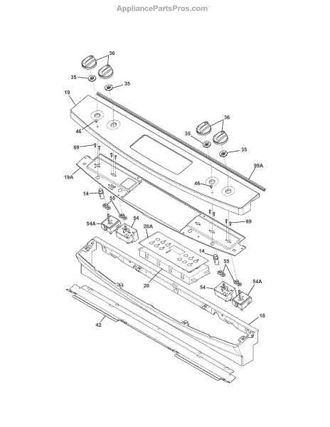 This control console is the outer housing that holds and protects the appliance's control buttons and display, restoring a clean, functional front surface and securing the control components. What it does: