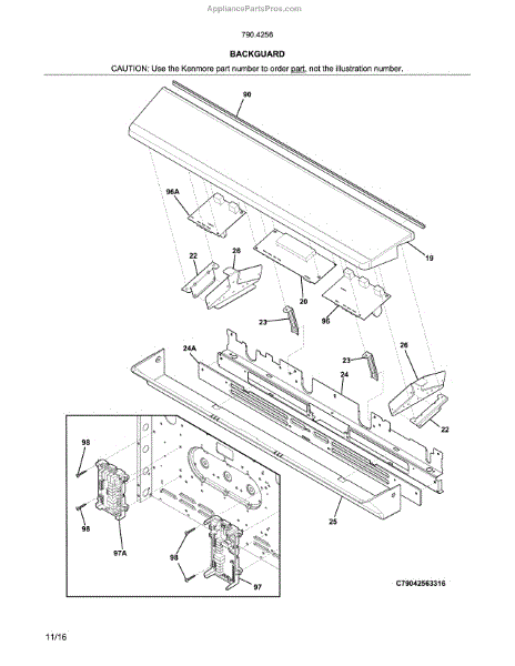 Parts for Kenmore 790.42569316 (79042569316, 790 42569316): Backguard Parts