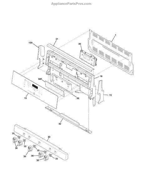 Replace your gas range's manifold panel if cracked, damaged, or missing. This front control panel covers the gas valve manifold assembly and burner controls.