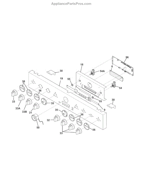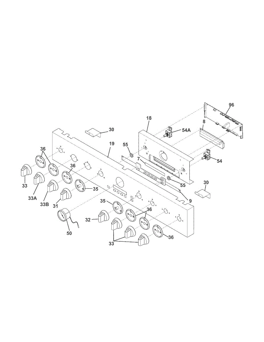Membrane-style touch pad that installs on the front control panel. Replace if buttons are unresponsive, labels are worn or faded, or the overlay is cracked.