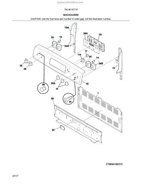 Parts for Kenmore 790.96197710 (79096197710, 790 96197710): Backguard Parts