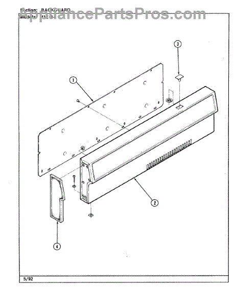 Parts for Magic Chef 41EK-14: 01 - Backguard Parts