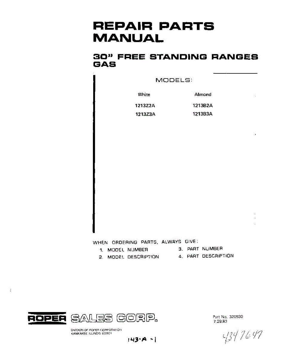 Roper Range Parts