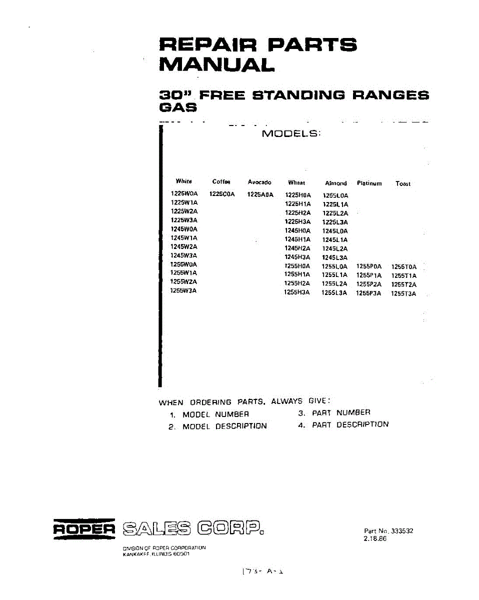 Parts for Roper 1255W3A: 01 - Backguard Parts