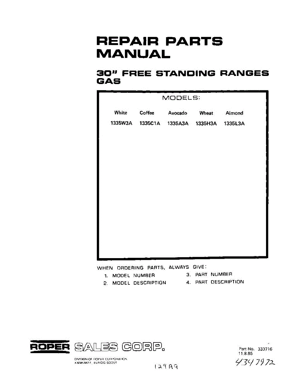 Roper Range Parts