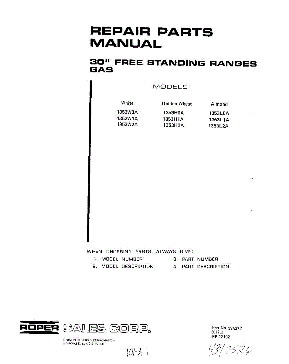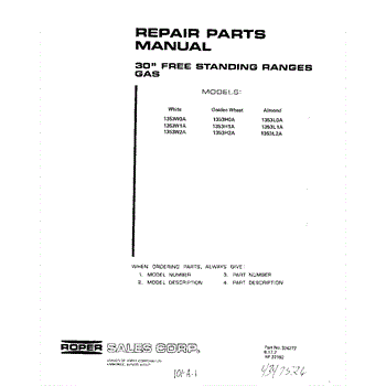 Parts for Roper 1353W2A: 01 - Backguard Parts