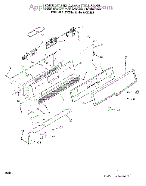 Parts for Roper 1353W4A: 02 - Backguard Parts