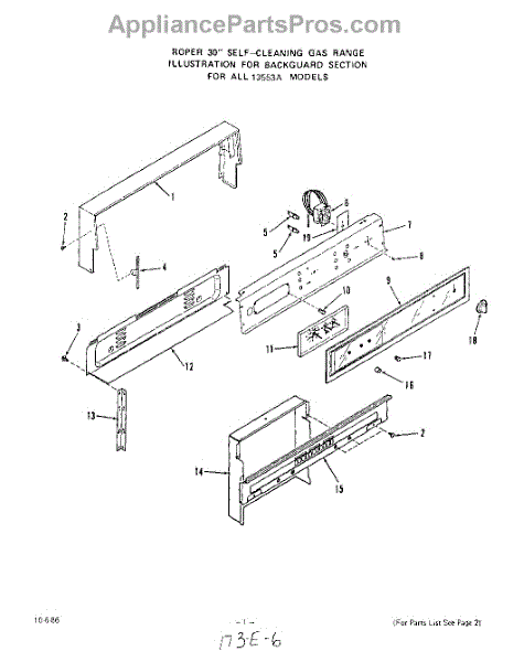 Parts for Roper 1355W3A: 02 - Backguard Parts
