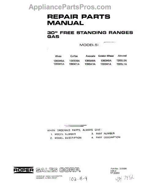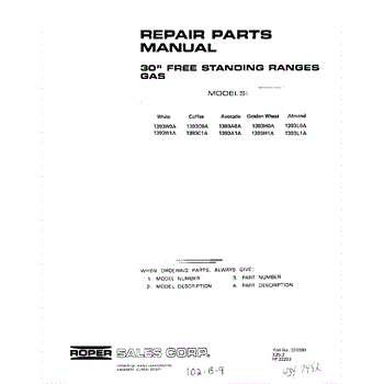 Parts for Roper 1393W1A: 01 - Backguard Parts
