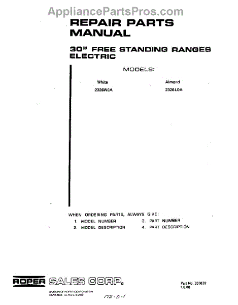 Roper Range Parts