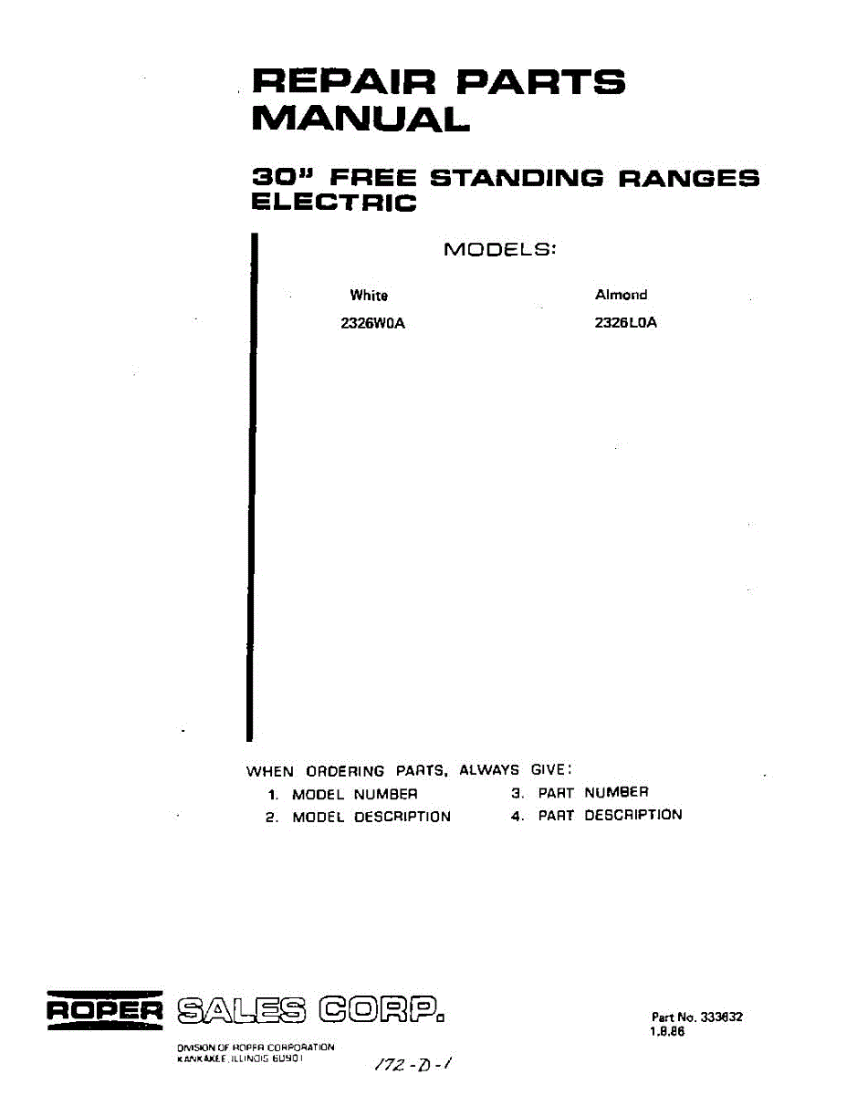 Parts for Roper 2326W0A: 01 - Backguard Parts