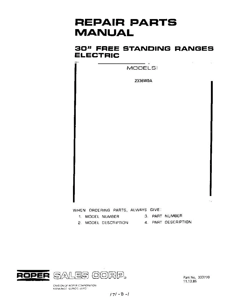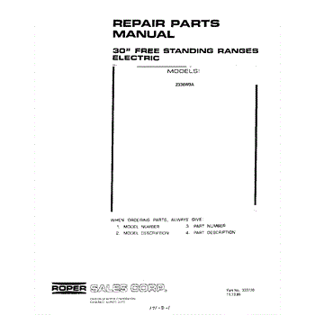 Parts for Roper 2336W0A: 01 - Backguard Parts