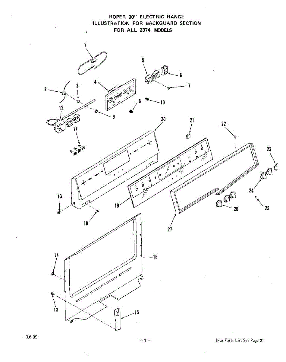 Parts for Roper 2374W2A: 02 - Backguard Parts