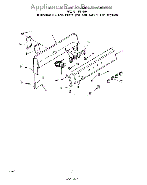 Parts for Roper F5007W0: 02 - Backguard Parts