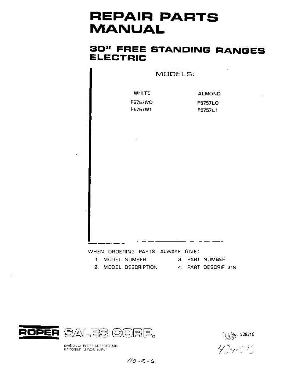 Roper Range Parts
