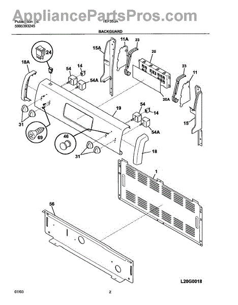 Parts for Tappan TEF353ASE: 03 - Backguard Parts