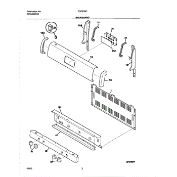 White backguard panel for range control area. Replaces cracked, discolored, or damaged backguard panels. Restores clean appearance behind controls.