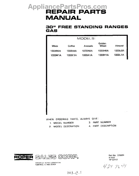 Parts for Whirlpool 1333W1A: 01 - Backguard Parts