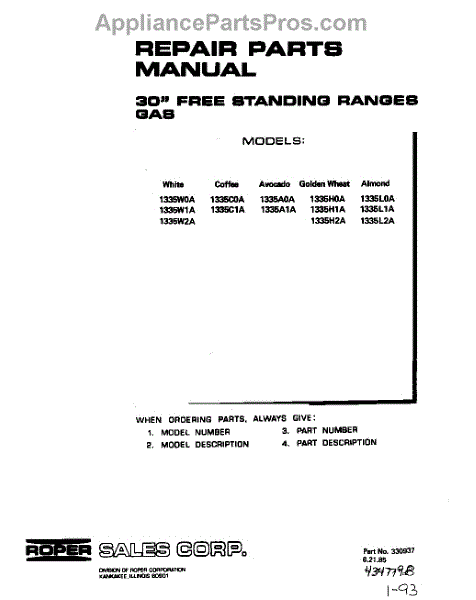Parts for 1335W2A