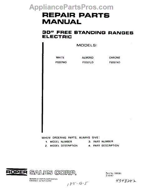 Whirlpool Range Parts