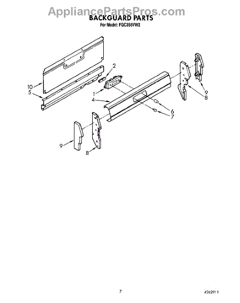 Parts for Whirlpool FGC355VL2: 05 - Backguard Parts