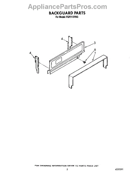 Parts for Whirlpool FGP315VL3: 04 - Backguard Parts