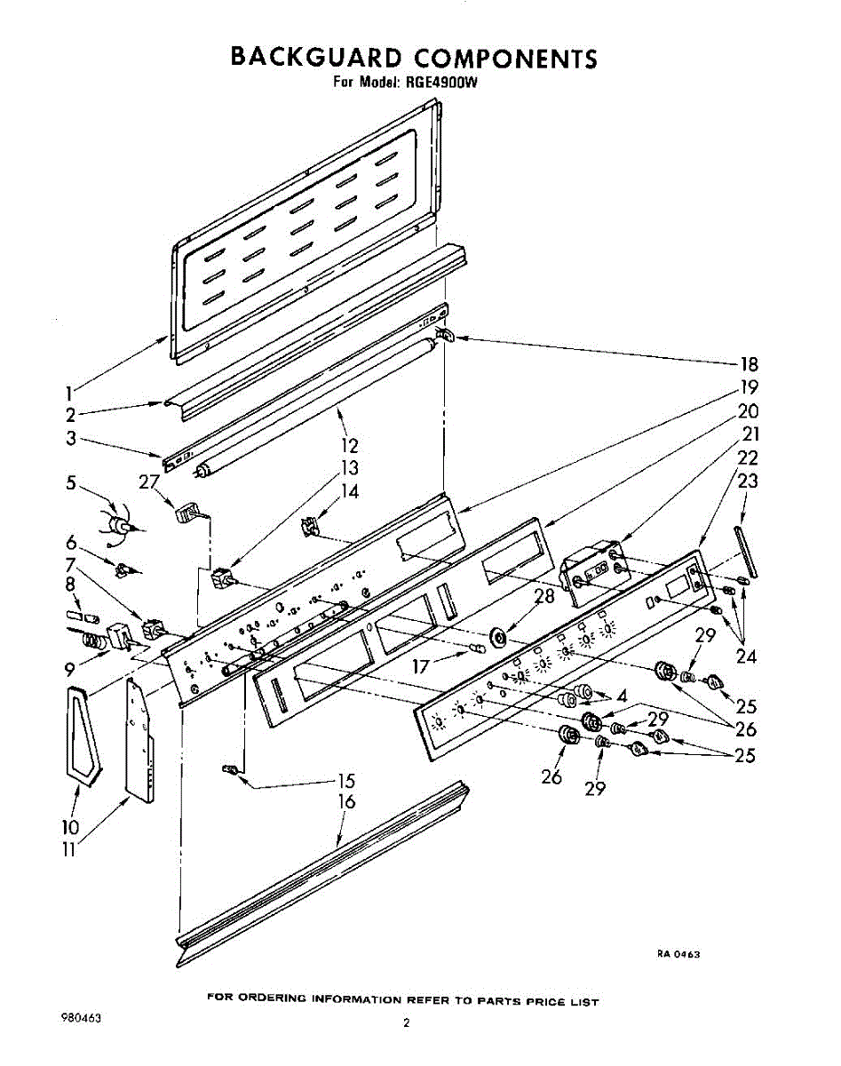 Parts for Whirlpool RGE4900W: 02 - Backguard Parts