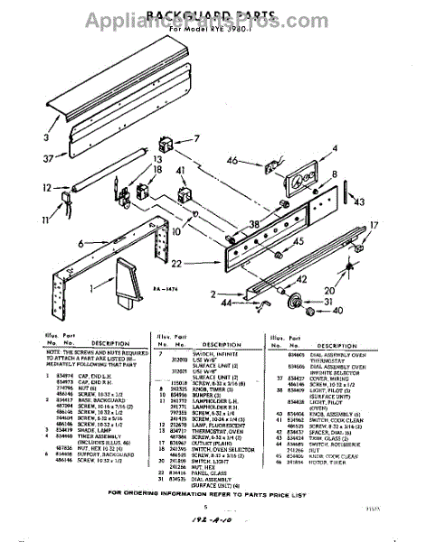 Parts for Whirlpool RYE37801: 05 - Backguard Parts