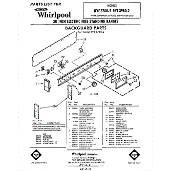 Parts for Whirlpool RYE37802: 01 - Backguard Parts