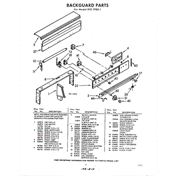 Parts for Whirlpool RYE39801: 05 - Backguard Parts