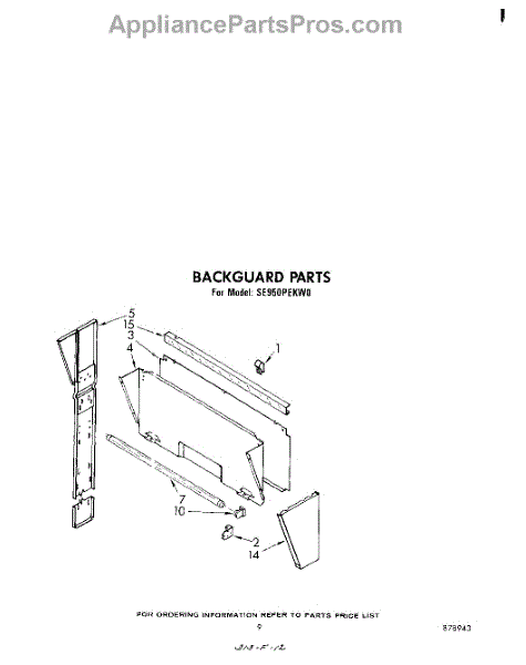 Parts for Whirlpool SE950PEKW0: 07 - Backguard Parts