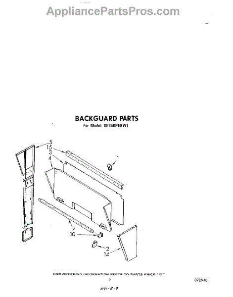 Parts for Whirlpool SE950PEKW1: 07 - Backguard Parts