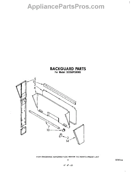 Parts for Whirlpool SE950PSKW0: 07 - Backguard Parts